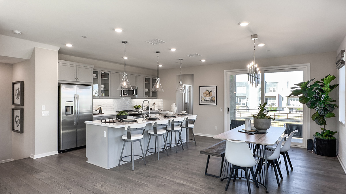 Inside, Calla homes were designed for how people truly live. Three-story layouts separate daily activity from private spaces, open-concept main living levels invite connection, and attached two-car garages add convenience without sacrificing style. As one of Confluence Village’s earlier townhome offerings, Calla provided an approachable, design-forward option that continues to resonate with resale buyers looking for flexible layouts in Valencia by FivePoint.