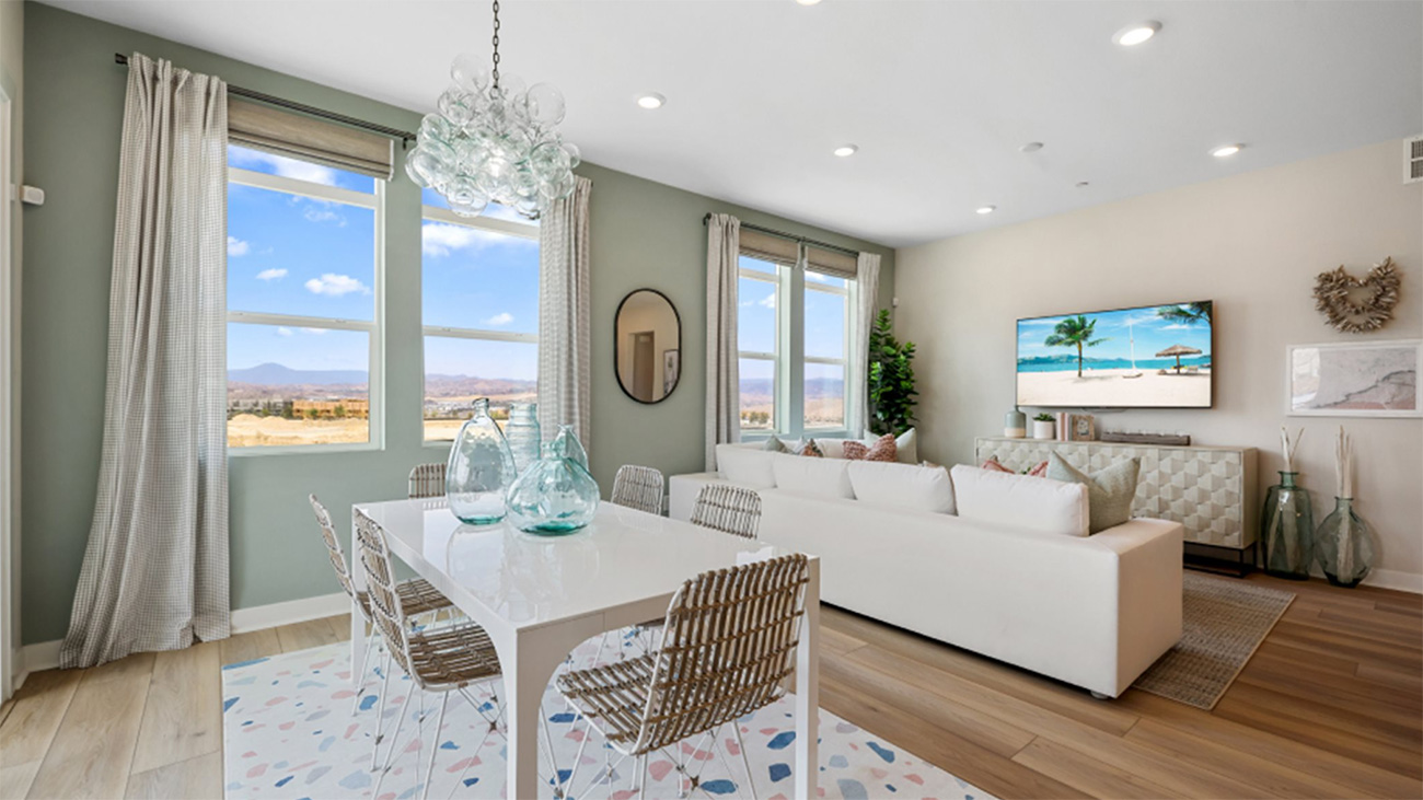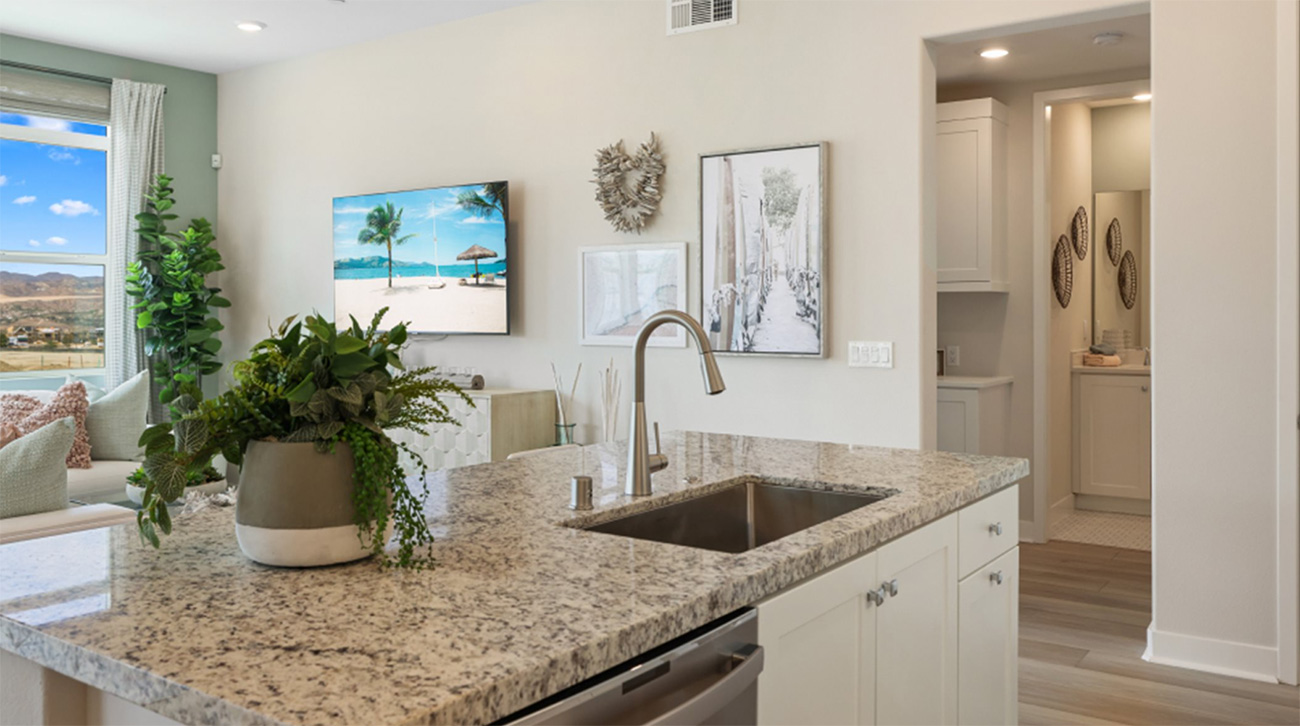Lamplight Plan 3 by Lennar is a single-story Flat in Valencia by FivePoint that blends comfort and simplicity in the heart of the Santa Clarita Valley. The open-concept layout connects the kitchen, dining area, and family room in one seamless flow, creating a natural gathering space filled with light. A covered deck extends the living area outdoors, offering an easy transition between inside and out — a feature that continues to define why Santa Clarita new homes in Valencia by FivePoint remain so appealing.