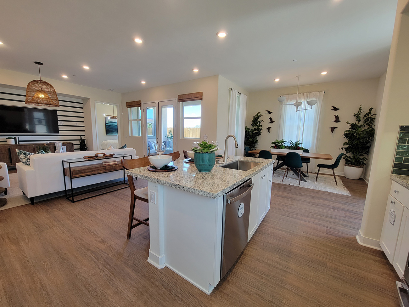 What makes Lamplight Plan 4 especially appealing is how effortlessly it lives. The spacious kitchen island becomes a natural gathering point, the indoor–outdoor connection encourages relaxed evenings on the patio, and the single-level layout supports comfort without stairs. Buyers looking for a modern Lennar flat in Valencia by FivePoint appreciate the balance of privacy, openness, and low-maintenance living all within Confluence Village.