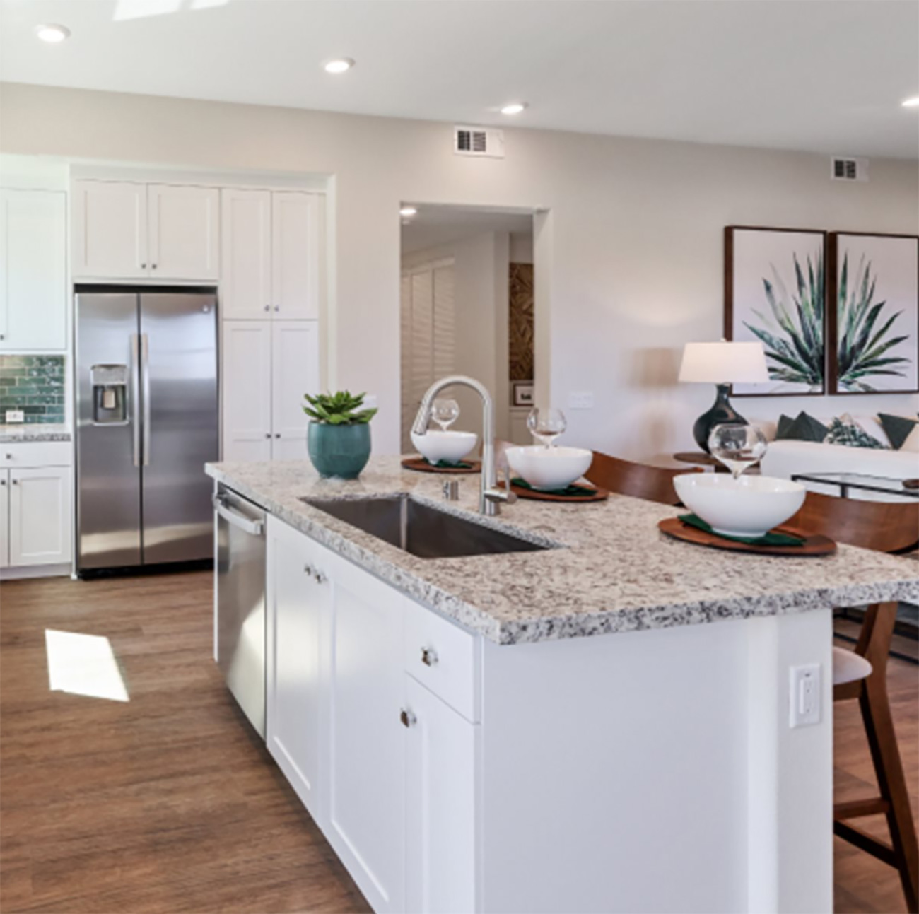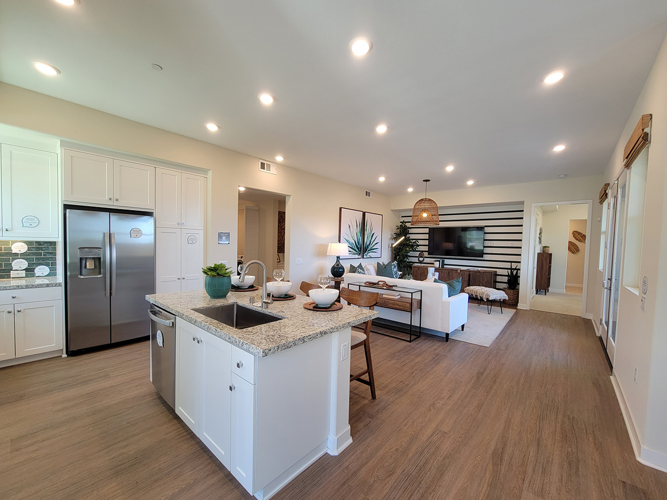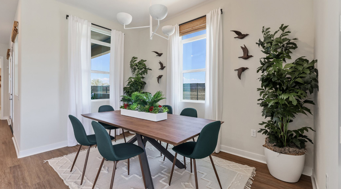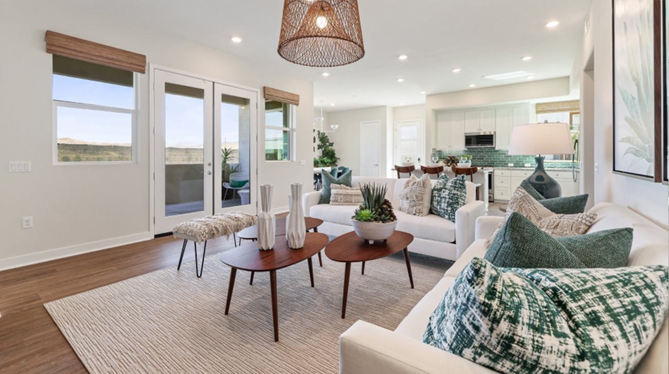 Lamplight Plan 4 by Lennar is a thoughtfully designed 1-story flat in Valencia by FivePoint that blends open-concept living with everyday comfort. The kitchen, dining area, and family room connect seamlessly, creating one continuous gathering space filled with natural light and easy access to the covered patio. The owner’s suite is privately positioned in its own corner of the home, while the secondary bedroom and bath sit closer to the main living area—ideal for guests, a home office, or flexible daily use. In the heart of the Santa Clarita Valley, this design reflects the simplicity and ease many buyers seek in Santa Clarita new homes.