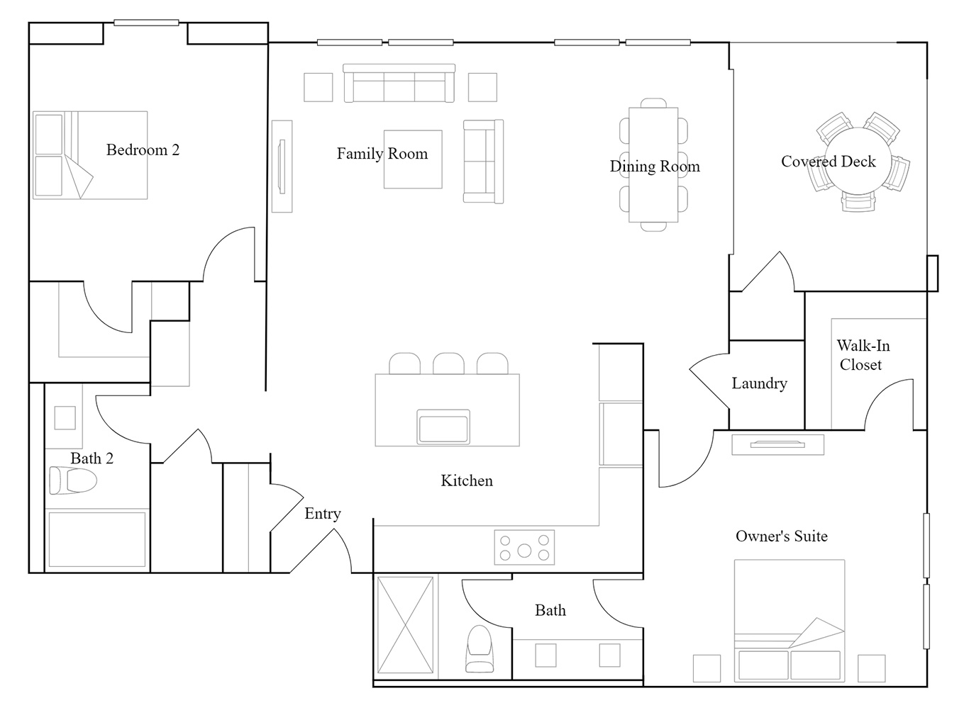 Easy single-level living with an open heart and a welcoming outdoor retreat.