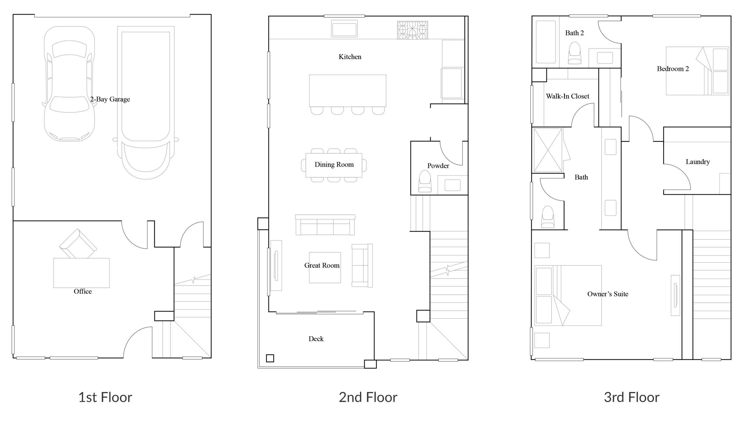 Plan 1 at Outlook by Lennar is a thoughtfully designed three-story townhome that balances modern style with everyday comfort. The flexible first-floor space offers a welcoming place for a home office, studio, or bonus room, while the main living area above feels open, light-filled, and easy to settle into.