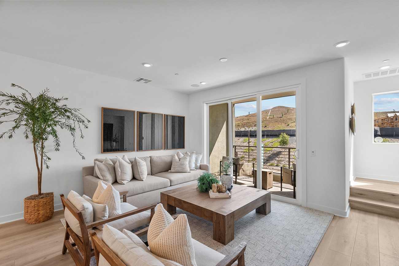 This model resonates with buyers who value flexibility, privacy, and efficient use of space. A lower-level bedroom provides options for guests, a home office, or multigenerational living, while the upper-level owner’s suite offers a quiet retreat. Indoor–outdoor connections and a light-filled living level enhance everyday comfort, making Outlook Plan 3 a strong fit for buyers looking for a modern Lennar townhome in Valencia by FivePoint.