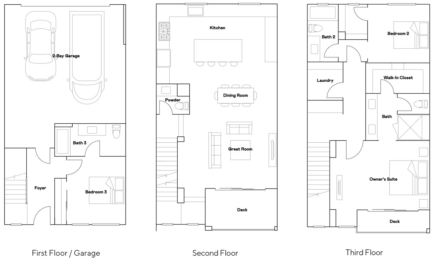 Explore all of the plans at Outlook by Lennar in Valencia by FivePoint. This three-story design features flexible living space, open-concept living, and private outdoor space.