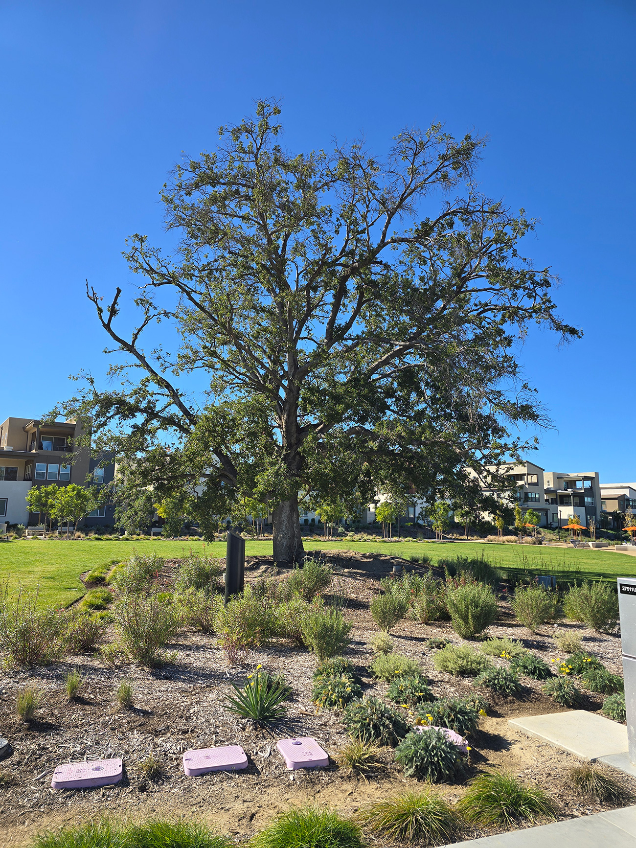 Heritage oak trees providing natural shade